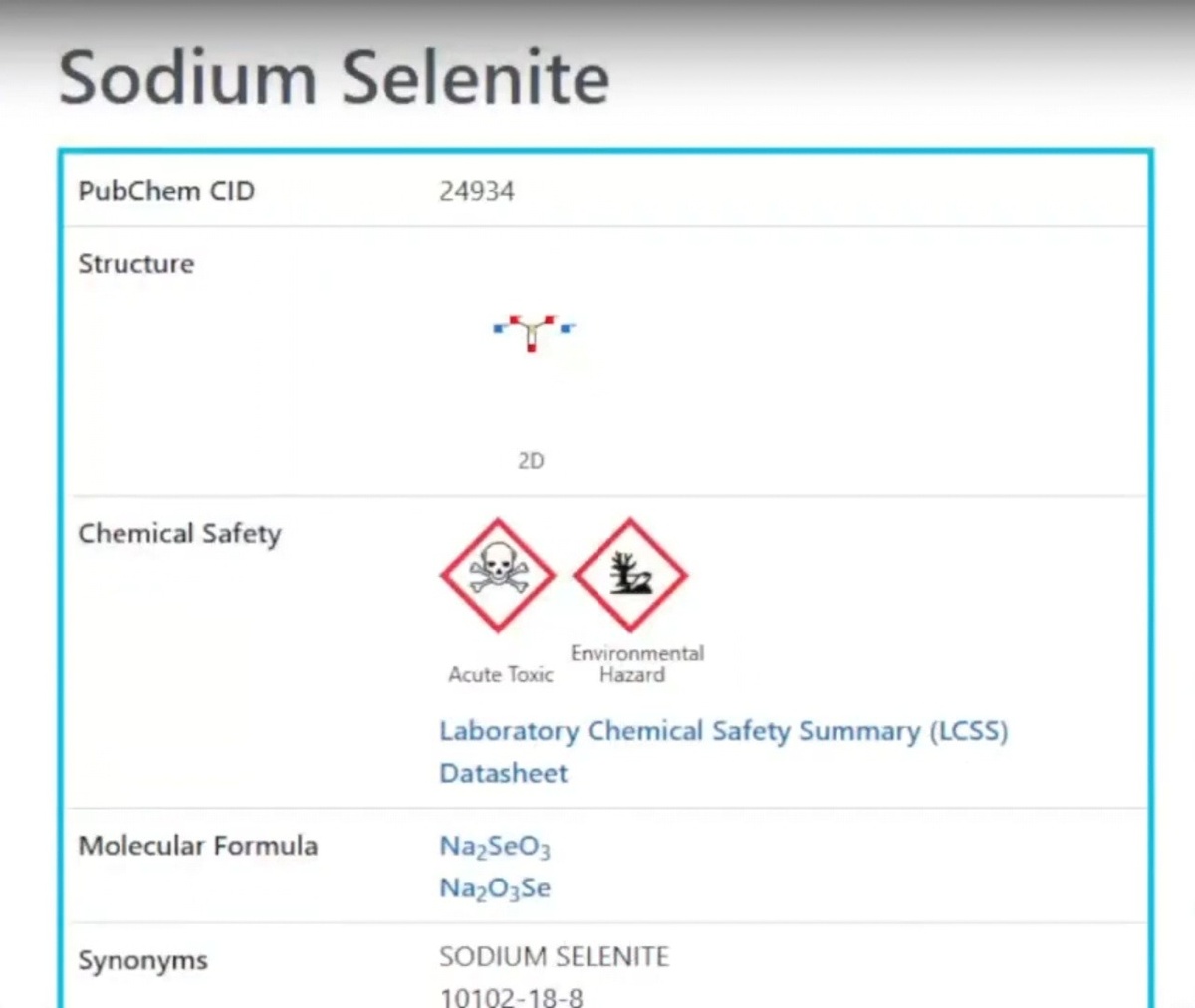 Если мы посмотрим на селенит натрия, то увидим формулу соединения.